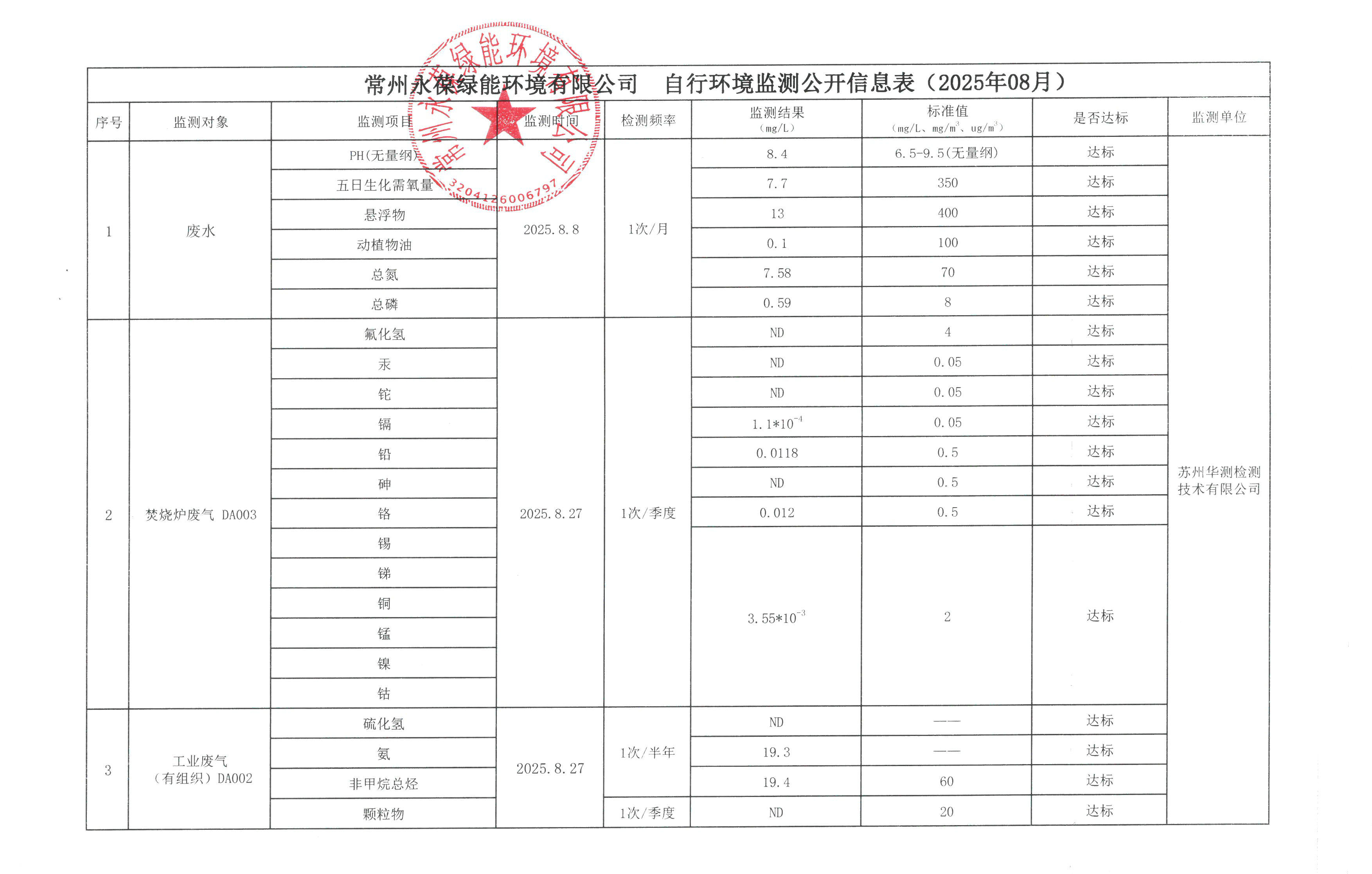 江蘇綠聯(lián)、永葆綠能、永葆綠源自行環(huán)境監(jiān)測公開信息